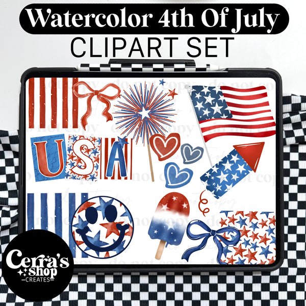 Watercolor 4th of July Clipart set