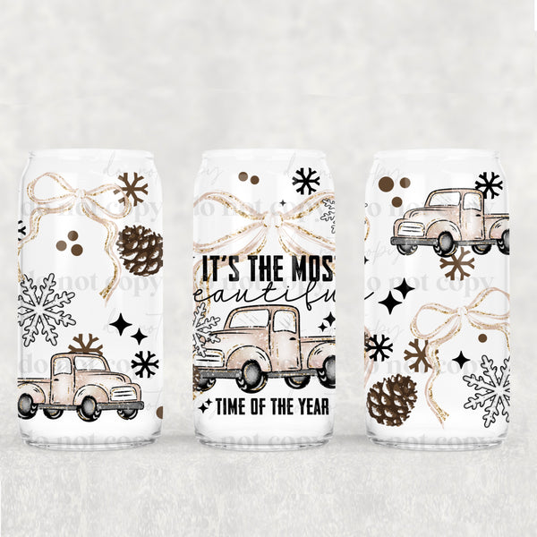 Beautiful Time Of Year Truck 16oz Glass Wrap