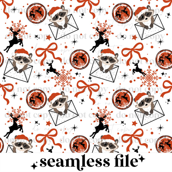 Raccoon Christmas Letters Seamless