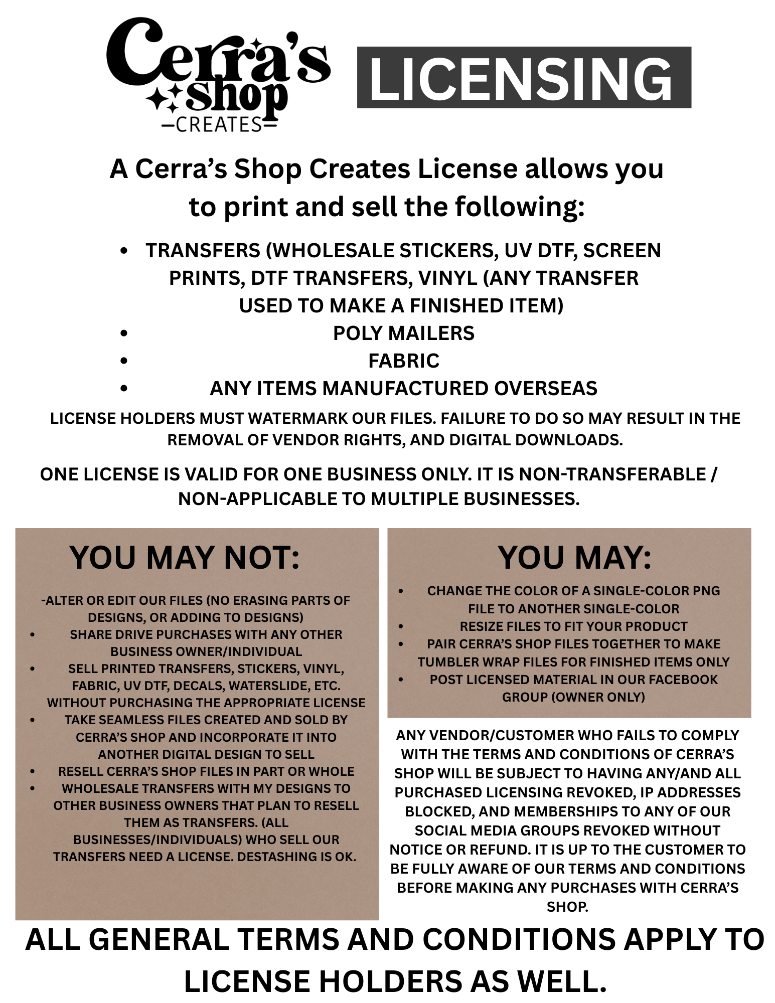Digital files for your small business! We specialize in coordinating PNG, seamless, and tumbler wrap files! Sharing files is a violation to the terms and conditions you agree to at checkout.