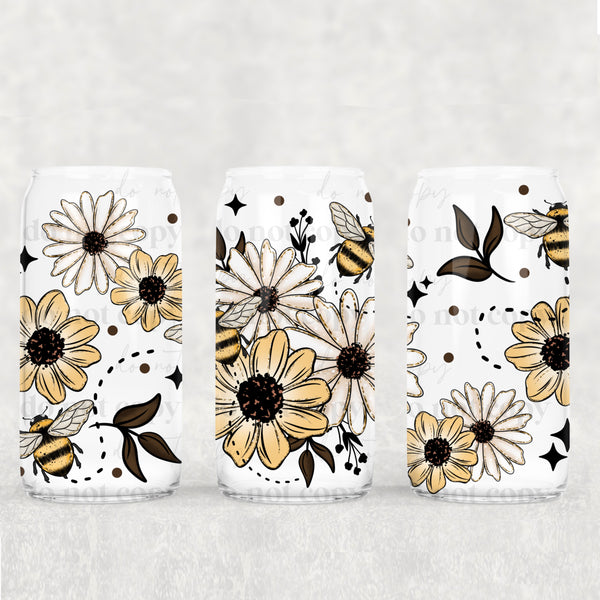 Floral Bees 16 oz Glass Wrap