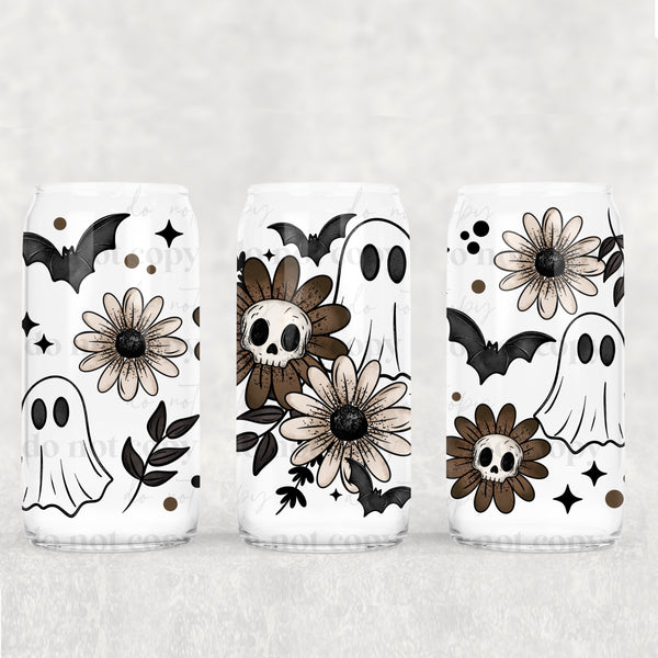 Floral Ghost 16oz Glass Wrap