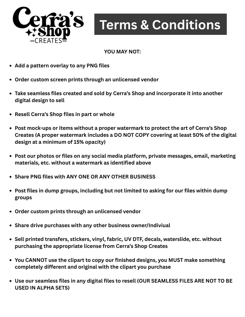 Digital files for your small business! We specialize in coordinating PNG, seamless, and tumbler wrap files! Sharing files is a violation to the terms and conditions you agree to at checkout.